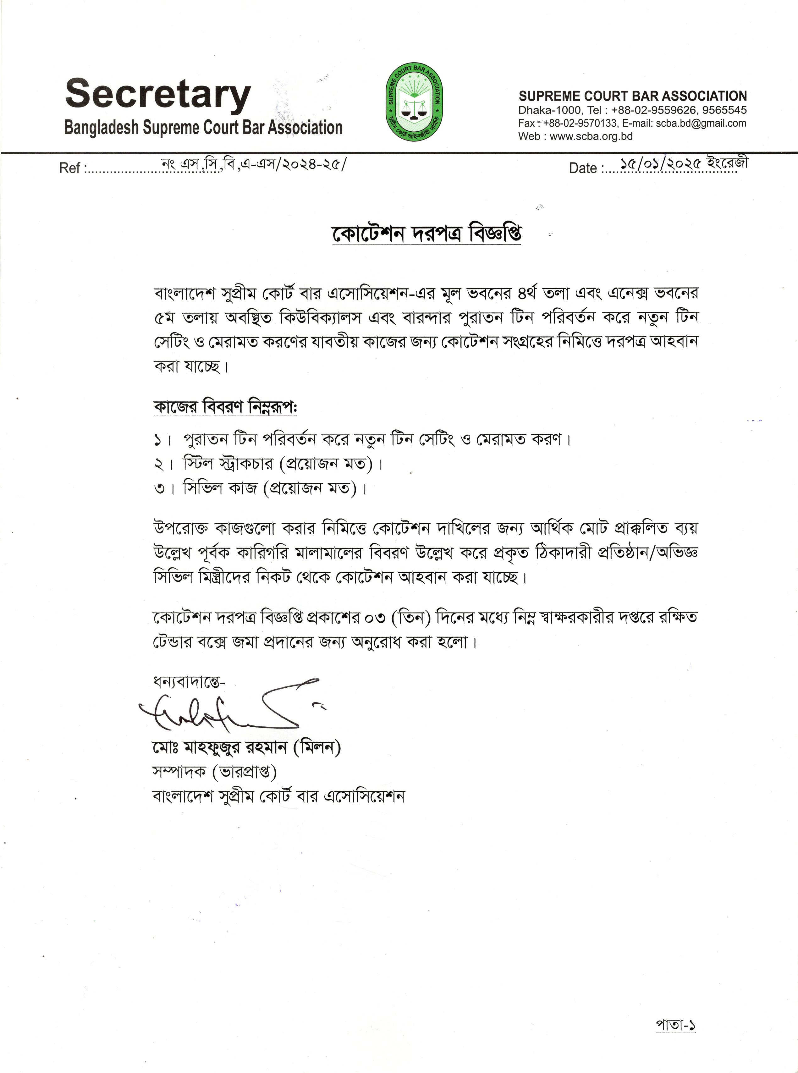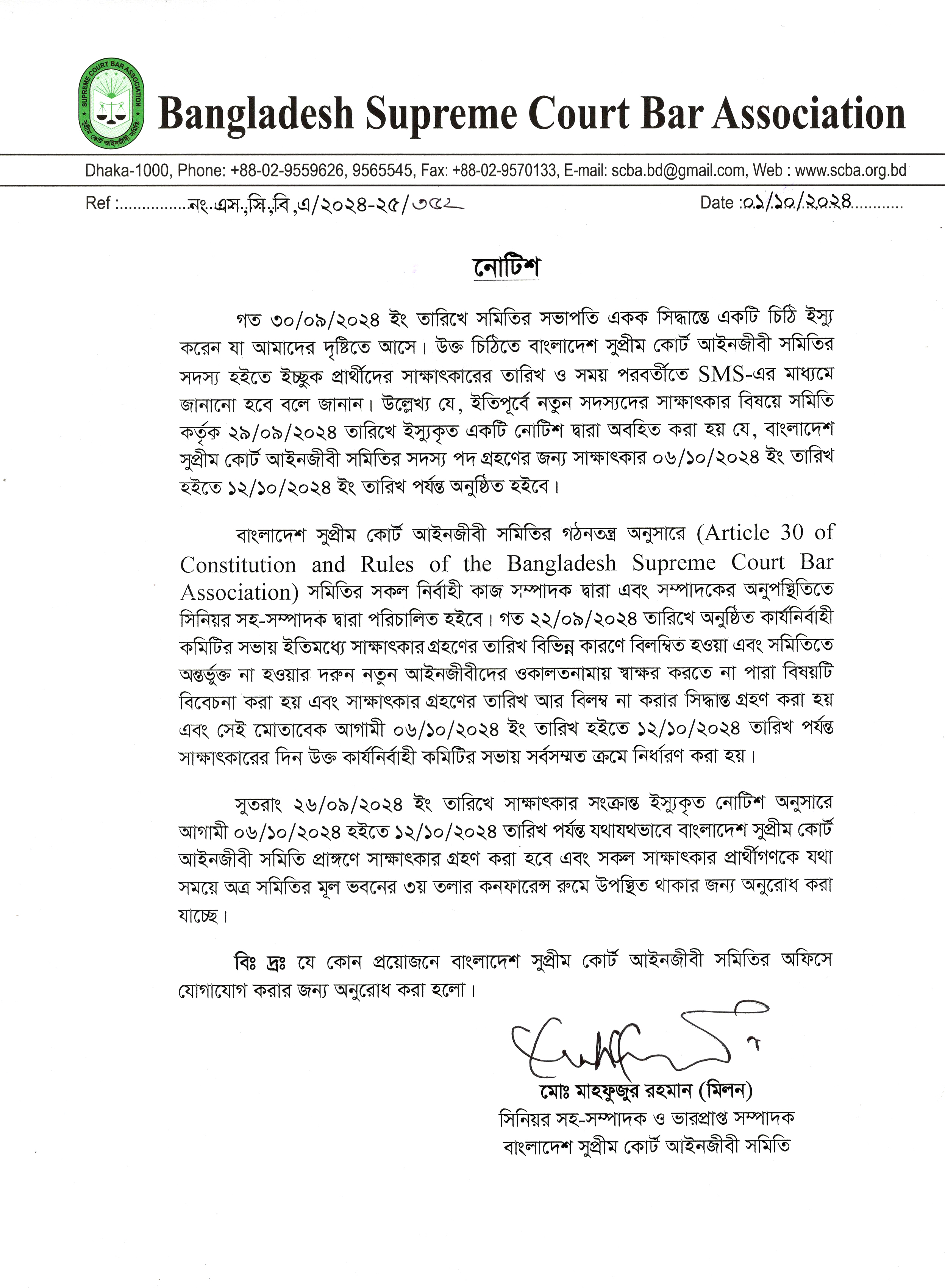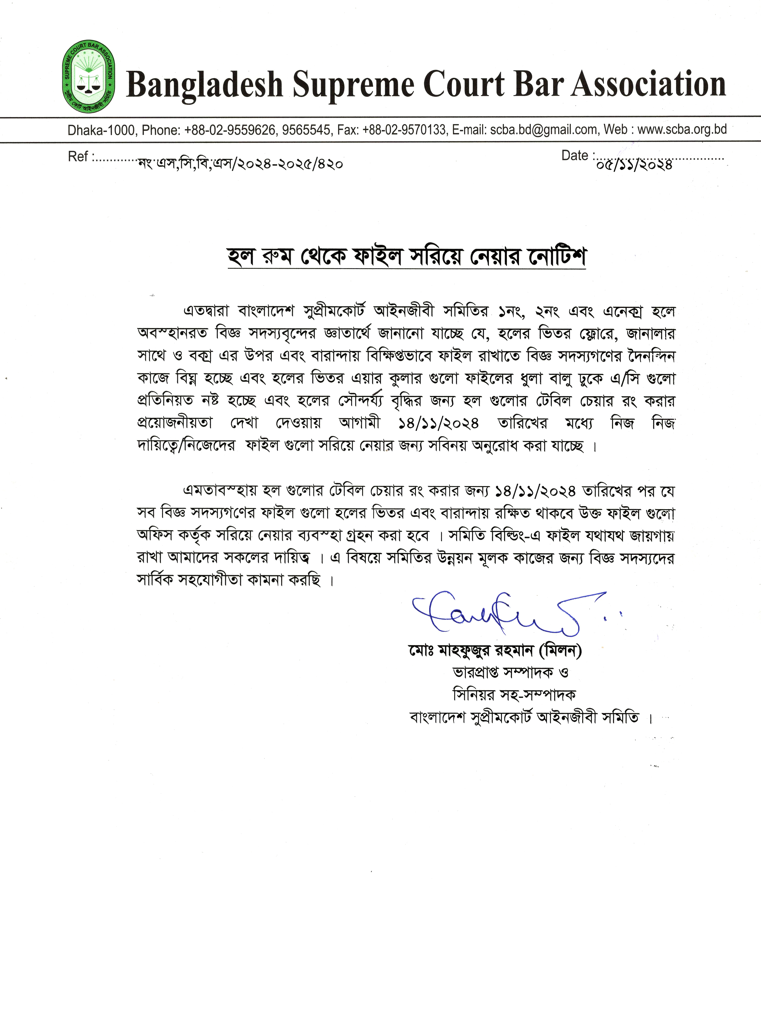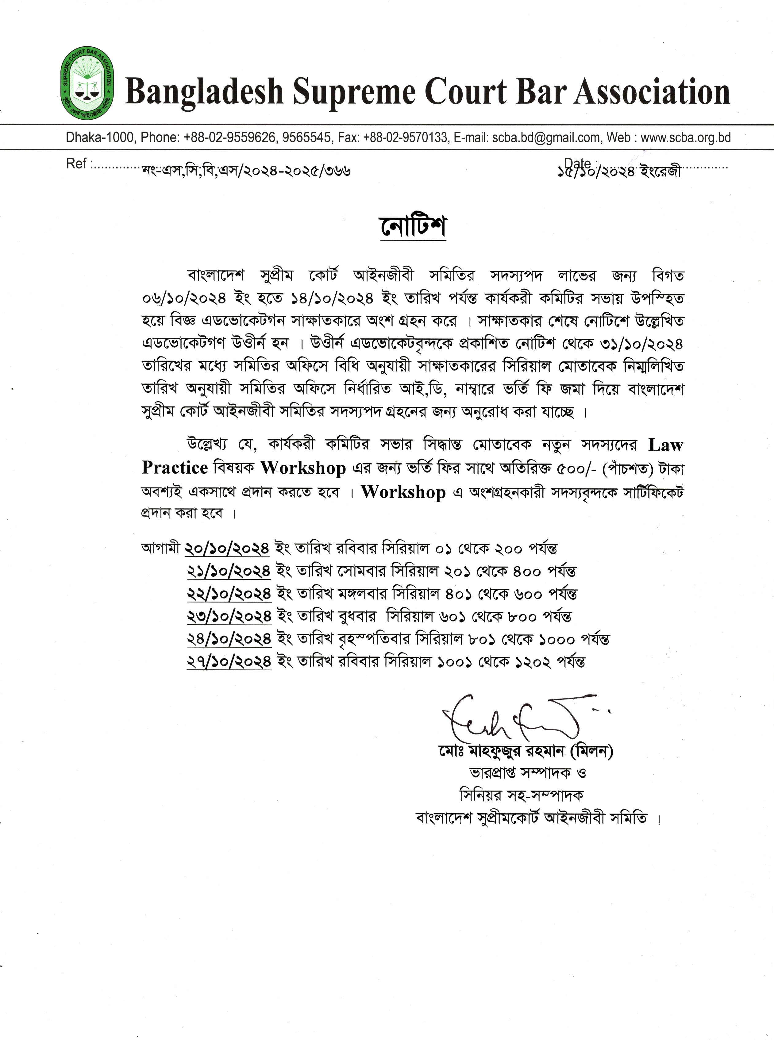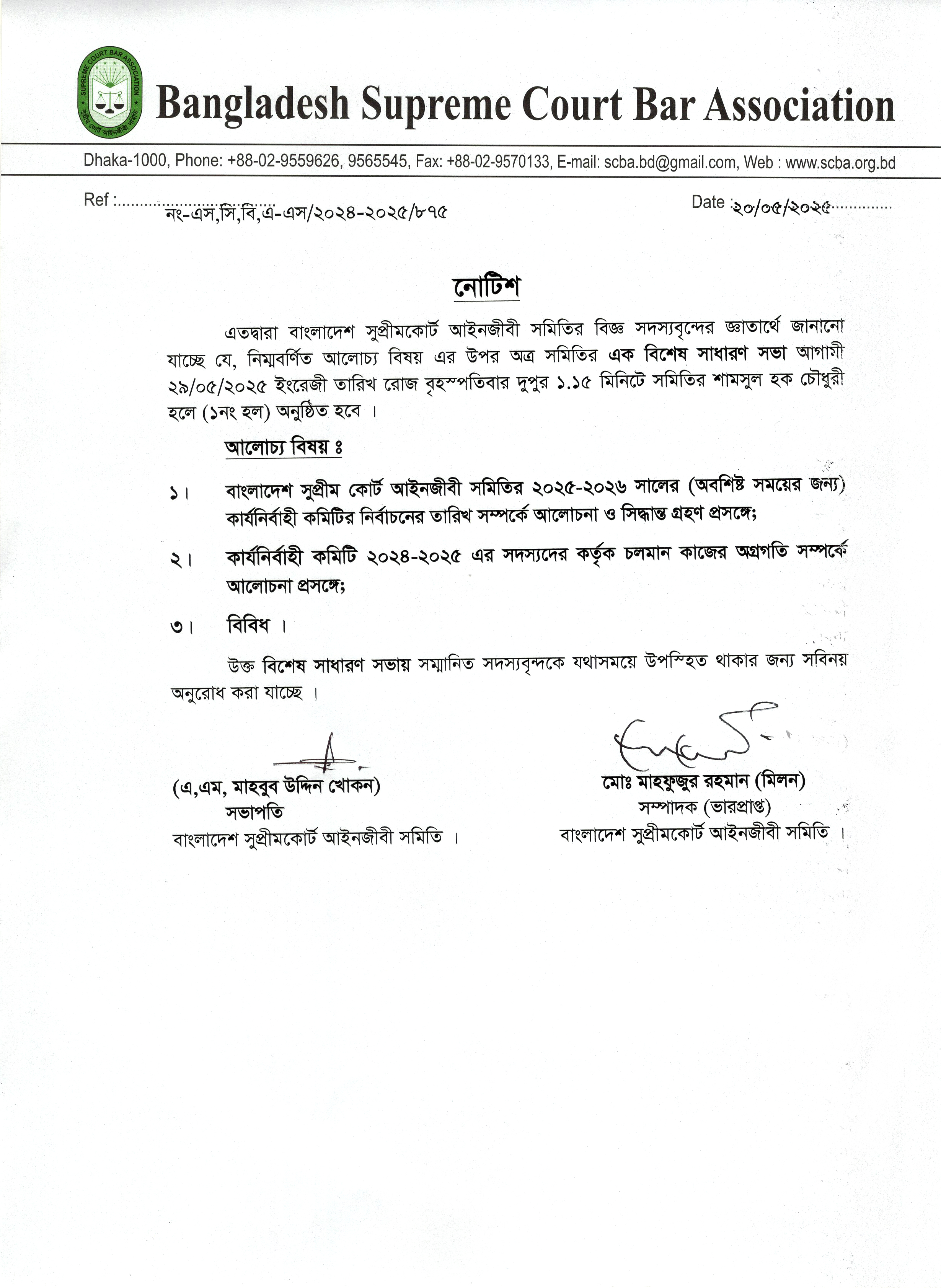 Message From the Secretary (Acting)It is a great pleasure on my part as Secretary, Bangladesh Supreme Court Bar Association to see the website. As an integral part of the Global Village we feel proud of being attached with the device..... Read More
